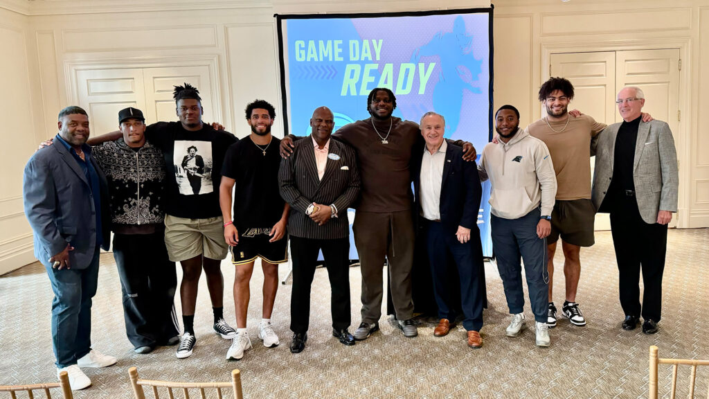 As passionate supporters of education and safety, SAFR and the Carolina Panthers players teamed up with Atrium Health, as together we share a common vision of empowering young minds while safeguarding their well-being on the field. By collaborating with Atrium Health, our student athletes have direct access to medical professionals on the sidelines, as part of Atrium Health’s Athletic Trainer Outreach Program at Charlotte-Mecklenburg Schools. Together, we all share a mission to extend our impact and effect real change in athlete safety across all levels of play in both practices and games.